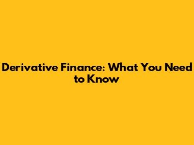 Derivative Finance: What You Need To Know