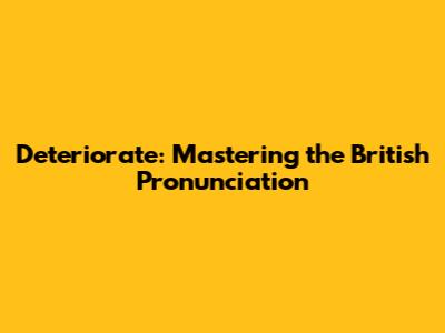 Deteriorate: Mastering The British Pronunciation