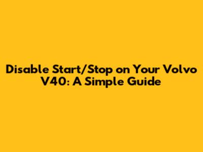 Disable Start/Stop On Your Volvo V40: A Simple Guide