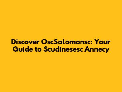 Hey guys! Ever heard of OscSalomonsc and how it connects to the beautiful Scudinesesc Annecy? If not, buckle up because we're about to dive into a fascinating journey. This article will unpack everything you need to know about OscSalomonsc, its relevance to Scudinesesc Annecy, and why it matters. So, let’s get started!