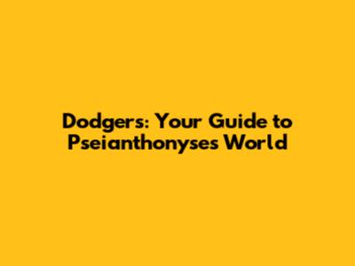 Dodgers: Your Guide To Pseianthonyse's World