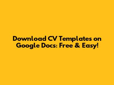 Download CV Templates On Google Docs: Free & Easy!