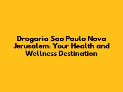 Hey guys! Are you looking for a Drogaria Sao Paulo in Nova Jerusalem? You've landed in the right spot! We'll explore everything you need to know about this essential resource for your health and wellness needs. Drogaria Sao Paulo is a well-known and trusted pharmacy chain in Brazil, and finding a location in Nova Jerusalem can be a game-changer for residents and visitors alike.