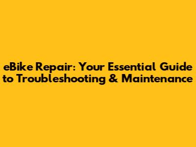 EBike Repair: Guide To Troubleshooting & Maintenance