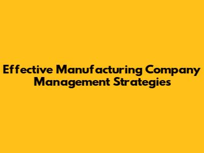 Effective Manufacturing Company Management Strategies