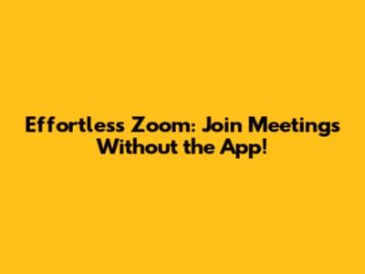 Effortless Zoom: Join Meetings Without The App!
