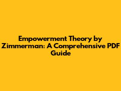 Empowerment Theory By Zimmerman: PDF Guide