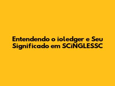 Entendendo O Ioledger E Seu Significado Em SCiNGLESSC
