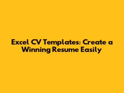 Excel CV Templates: Create A Winning Resume Easily