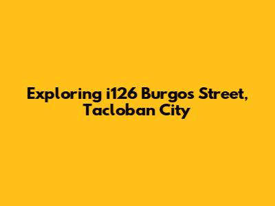 Hey guys! Ever wondered about the hidden gems in Tacloban City? Well, buckle up, because we're diving headfirst into i126 Burgos Street. This isn't just any street; it's a slice of Tacloban life, a hub of activity, and a place where you can experience the heart of the city. We're going to explore everything from what makes this street tick to what you can do, see, and most importantly, eat! Get ready to discover the vibrant energy of i126 Burgos Street. This area is a great place to start your Tacloban adventure. The lively atmosphere and friendly locals make it an awesome spot for both tourists and residents. From local businesses to historical landmarks, i126 Burgos Street has something for everyone. So, let’s get started and uncover the treasures that await us on this iconic street. I126 Burgos Street in Tacloban City is more than just an address; it's an experience.
