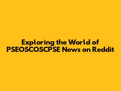 Exploring The World Of PSEOSCOSCPSE News On Reddit
