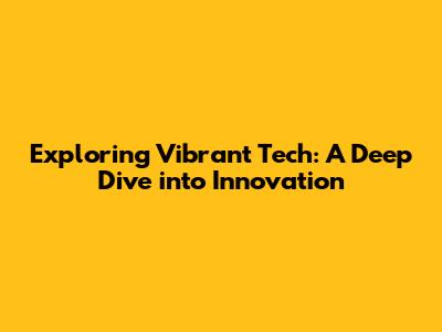 Exploring Vibrant Tech: A Deep Dive Into Innovation