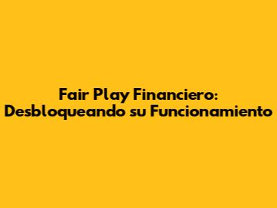 Fair Play Financiero: Desbloqueando Su Funcionamiento