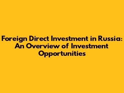FDI In Russia: An Overview Of Investment Opportunities