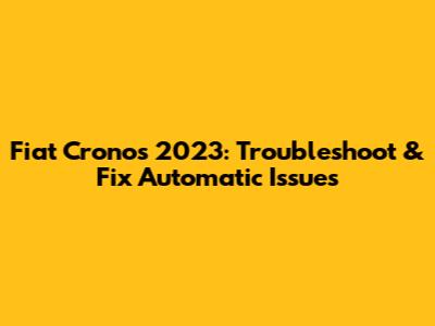 Fiat Cronos 2023: Troubleshoot & Fix Automatic Issues