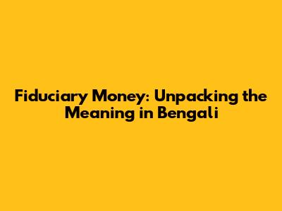 Fiduciary Money Explained: A Bengali Perspective