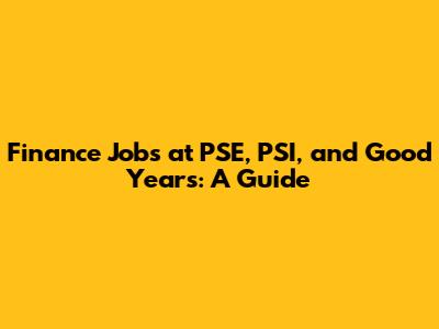 Finance Jobs At PSE, PSI, And Good Years: A Guide