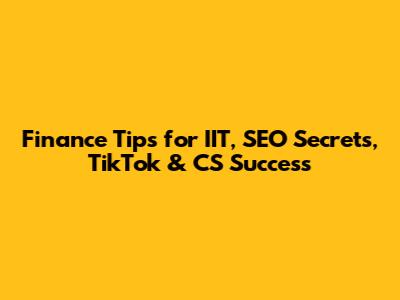Finance Tips For IIT, SEO Secrets, TikTok & CS Success