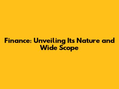 Finance: Unveiling Its Nature And Wide Scope