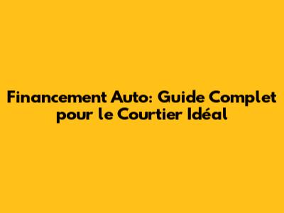 Financement Auto: Guide Complet Pour Le Courtier Idéal