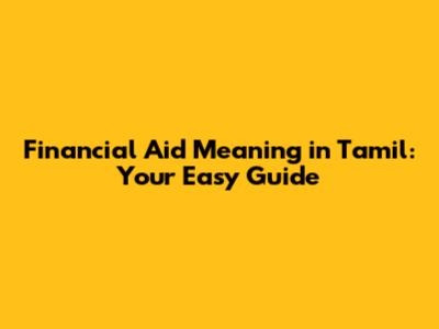 Financial Aid In Tamil: A Simple Guide