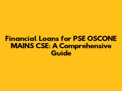 Financial Loans For PSE OSCONE MAINS CSE: A Comprehensive Guide