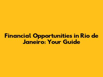 Financial Opportunities In Rio De Janeiro: Your Guide