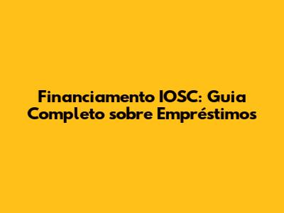 Financiamento IOSC: Guia Completo Sobre Empréstimos