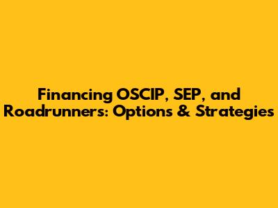 Financing OSCIP, SEP, And Roadrunners: Options & Strategies