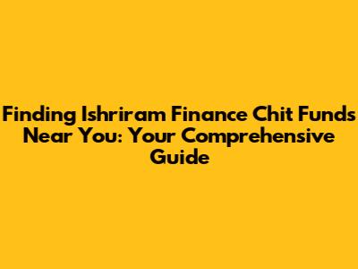 Hey there, finance enthusiasts! Are you on the hunt for Ishriram Finance chit funds near you? Well, you've come to the right place! Navigating the world of chit funds, especially with a specific company in mind, can seem like a daunting task. But don't worry, we're here to break it down for you. This guide will walk you through everything you need to know about Ishriram Finance chit funds, how to find them, what to look out for, and how to make an informed decision. Let's dive in, shall we?