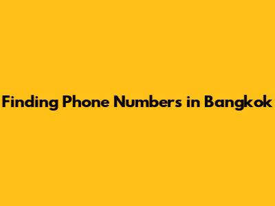 Finding Phone Numbers In Bangkok