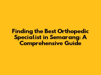 Finding The Best Orthopedic Specialist In Semarang: A Comprehensive Guide