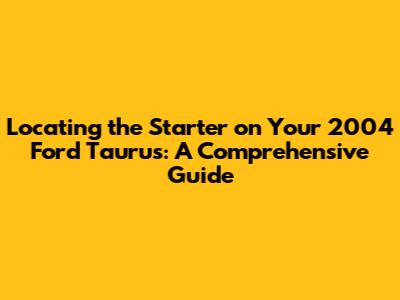 Hey there, fellow car enthusiasts! If you're here, chances are you're trying to figure out the 2004 Ford Taurus starter location. Don't worry, you're in the right place! Finding your starter can seem tricky, especially if you're new to car repairs, but I'm here to break it down for you. We'll explore where this crucial component lives in your Taurus and some tips to help you get the job done. Let's get started!