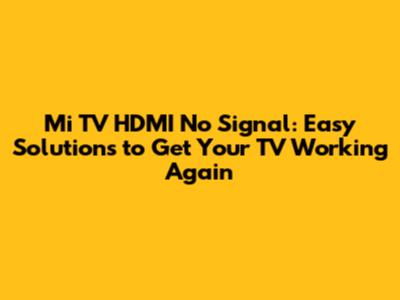 Fix: Mi TV HDMI No Signal - Easy Solutions