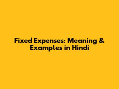 Fixed Expenses: Meaning & Examples In Hindi