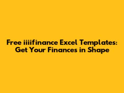 Free Iiiifinance Excel Templates: Get Your Finances In Shape