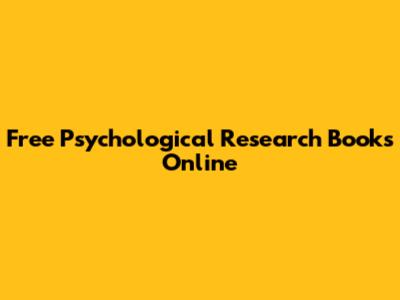 Free Psychological Research Books Online