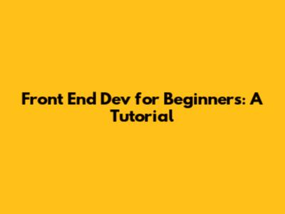 Front End Dev For Beginners: A Tutorial