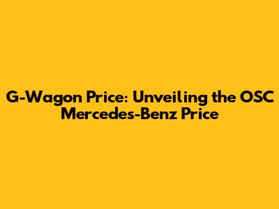 G-Wagon Price: Unveiling The OSC Mercedes-Benz Price