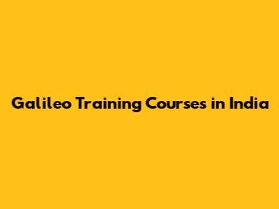 Galileo Training Courses In India