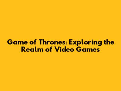 Game Of Thrones: Exploring The Realm Of Video Games