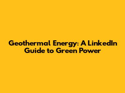 Geothermal Energy: A LinkedIn Guide To Green Power