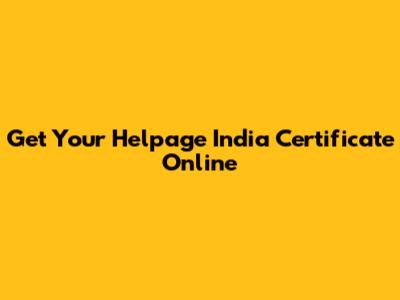 Get Your Helpage India Certificate Online
