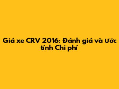 Giá Xe CRV 2016: Đánh Giá Và Ước Tính Chi Phí