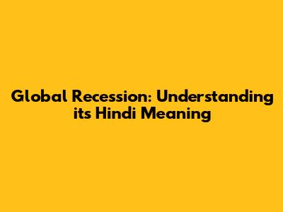 Global Recession: Understanding Its Hindi Meaning
