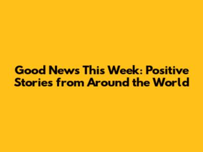 Good News This Week: Positive Stories From Around The World