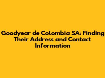 Hey guys! Are you looking for Goodyear de Colombia SA's address and contact information? You've come to the right place. In this article, we'll dive deep into how you can find exactly what you need to get in touch with them. Whether you're a customer, a potential business partner, or just curious, having the correct contact details is super important. Let's get started and make sure you're well-equipped with all the necessary information.