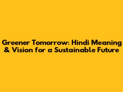 Greener Tomorrow: Hindi Meaning & Vision For A Sustainable Future