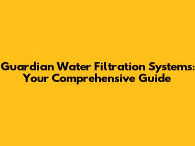 Guardian Water Filtration Systems: Your Comprehensive Guide