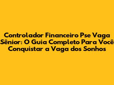 Guia Completo: Controlador Financeiro Pse Vaga Sênior